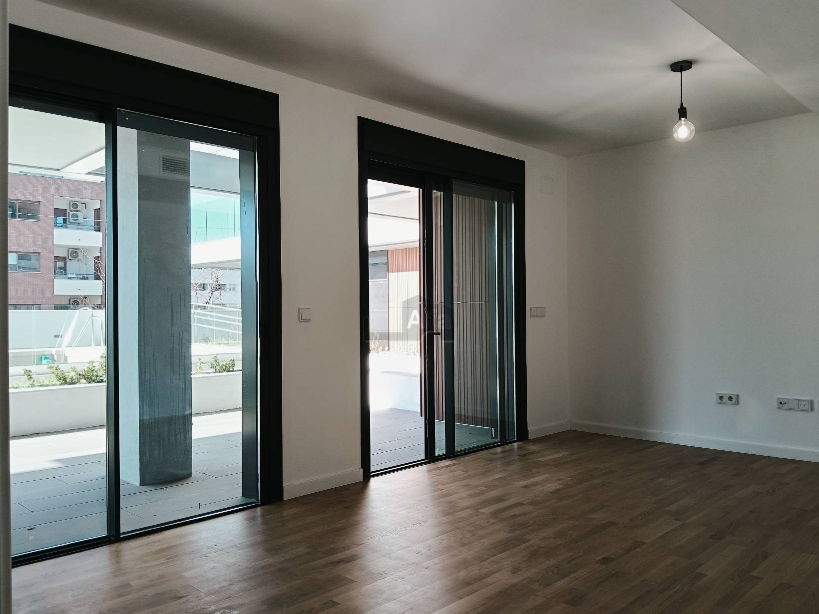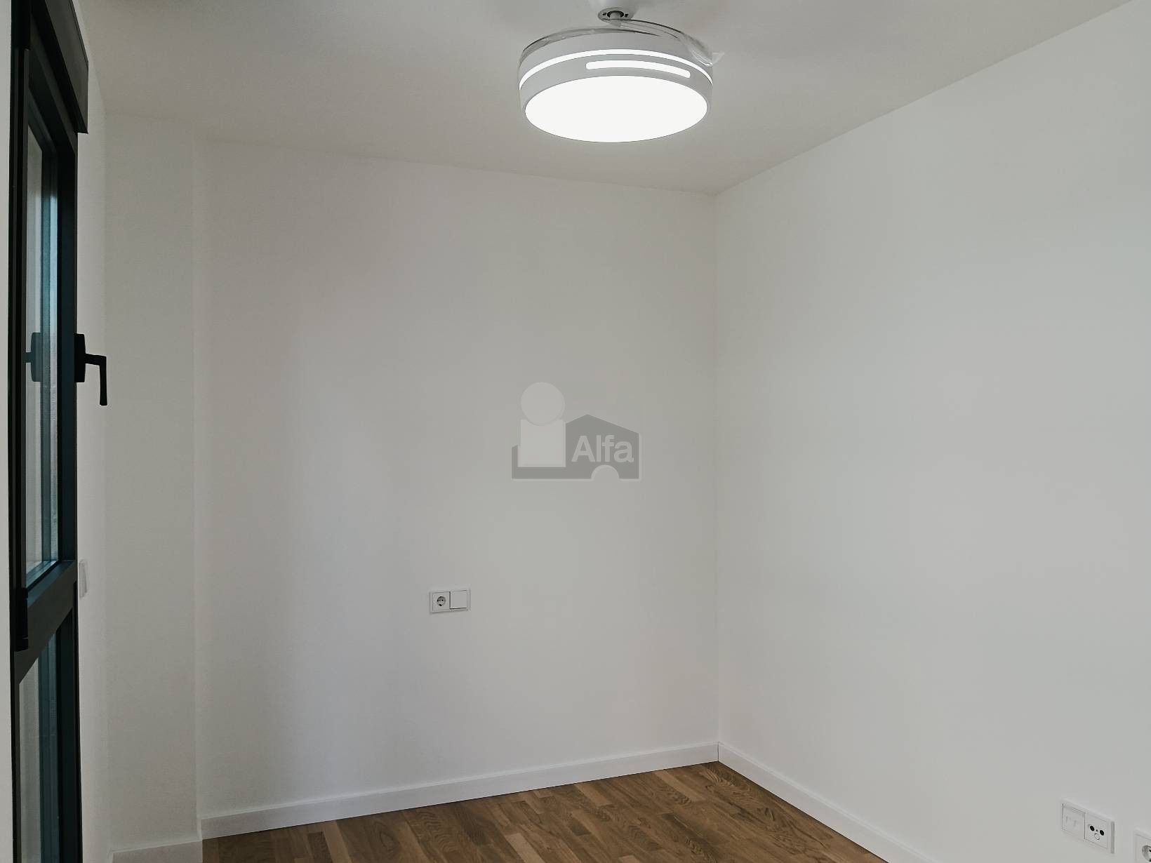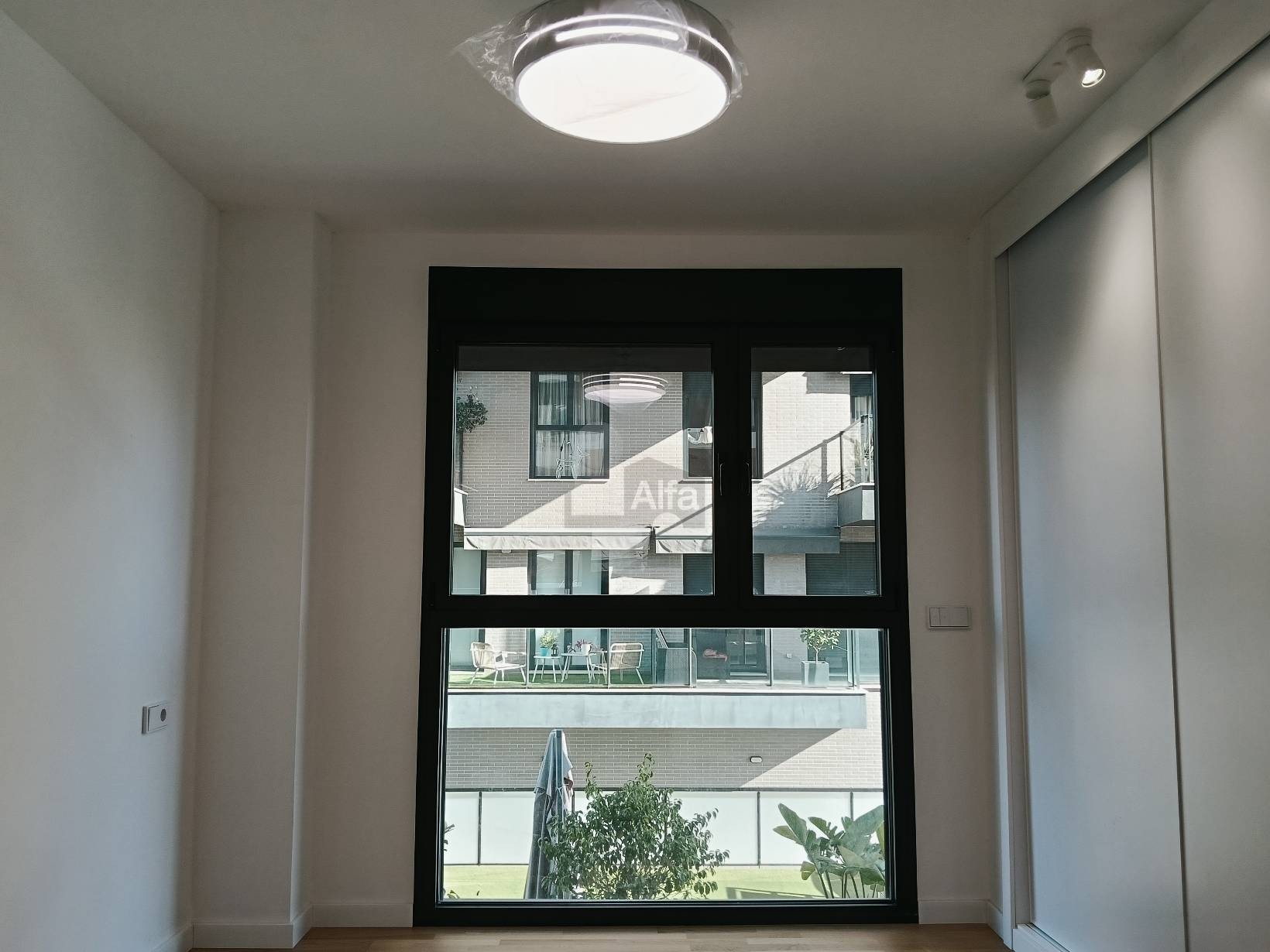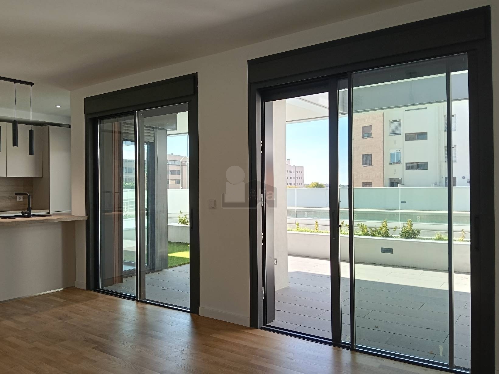 Este hogar cuenta con dos dormitorios muy luminosos, uno de ellos en suite, y dos baños modernos que garantizan la máxima comodidad. Además, dispone de una habitación adicional que puede adaptarse a tus necesidades: ya sea como despacho, vestidor o trastero. La calidad de los acabados es excepcional, con suelos de madera de roble y carpinterías de aluminio Strugal Infinity que aportan un toque elegante y persianas motorizadas.